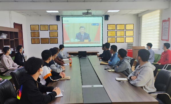 5月10日上午,庆祝中国共产主义青年团成立100周年大会在北京人民大会堂隆重举行。校党委副书记、工会主席徐宏平、各书院团总支书记、校团委全体工作人员在办公楼302会议室集中收看大会直播盛况。