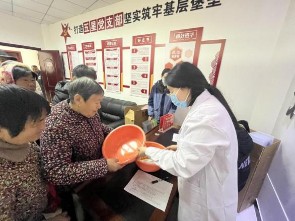 活动现场,前来咨询的村民络绎不绝,场面热烈而有序。beat365教师党员和吉瑞路社区卫生服务中心的医护人员为村民们提供了三大类服务:一是免费测量血压、血糖,二是中医特色的耳穴贴和针灸治疗,三是针对慢性病的用药指导和健康咨询。每一项服务都贴近村民的实际需求,受到了大家的热烈欢迎。特别是第一教工党支部成员李江博士,他用通俗易懂的语言为现场群众深入浅出地讲解了心脑血管疾病的预防和规范治疗,如心绞痛、高血压等常见疾病的自我保健方法。李博士的讲解既专业又实用,让村民们受益匪浅,他们纷纷表示要将这些健康知识应用到日常生活中,积极预防和控制疾病的发生。此外,活动还为村民们准备了精心挑选的生活用品作为礼物,这些贴心的举措让村民们在寒冷的初春感受到了来自社会的关怀与温暖。