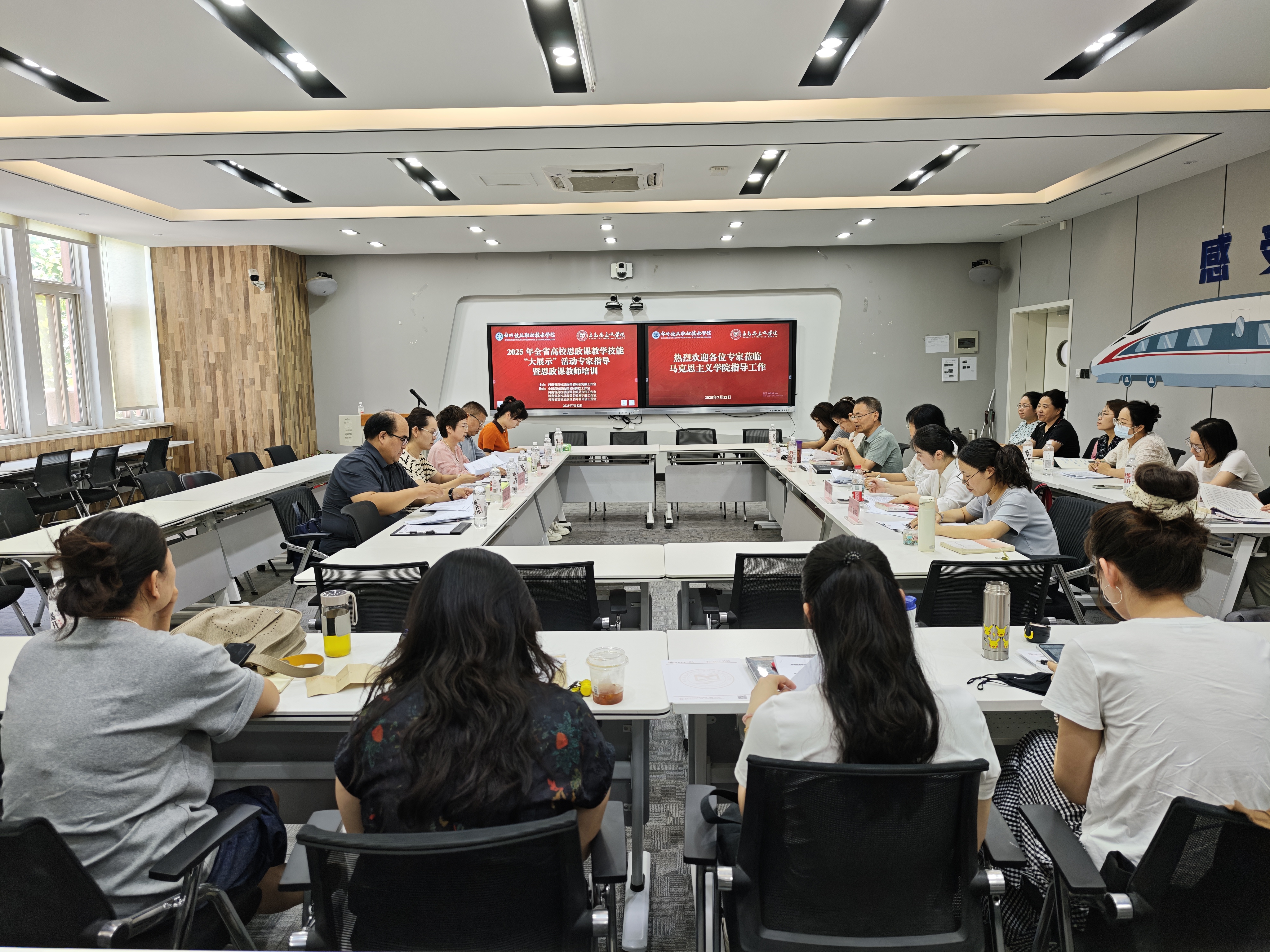 7月12日,马克思主义学院在7415会议室举办全省高校思政课教学技能“大展示”活动专家指导暨教师培训会。会议特邀陈娱、吴少伟、刘宁静、张珺倩、孙训华五位省内思政教育专家莅临指导,为参赛教师提供精准点评,为全体思政课教师进行专业培训。