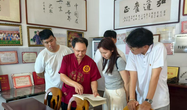 在非物质文化遗产调研活动中,团队拜访了罗山皮影戏国家级传承人李世宏先生,亲身体验皮影操作与制作工艺,并参观非物质文化遗产展示馆。同学们零距离感受非遗魅力,深刻体会到传统技艺背后的匠心精神,增强了文化认同与传承信念。