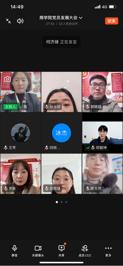 此次线上云端会议,是面对疫情及学生在外地实习的工作实际召开的一次特殊的支部党员大会。本次云端党员发展大会的成功召开,在保持党组织原有的活力与生命力的同时,创新工作方式方法,融入线上手段,既解决了疫情防控形势下实习学生不能返校参会的难题,又营造了师生互动的现实感。