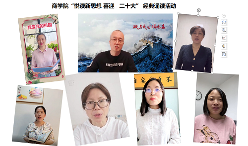 近日,商学院组织开展“悦读新思想 喜迎二十大”经典诵读活动,全体教职工踊跃参加了活动。