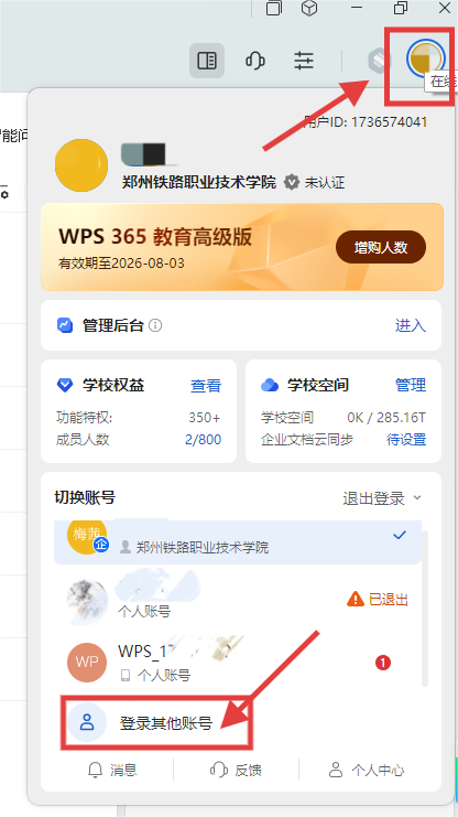 注意:之前登录过个人账号找不到登录其他账号的入口看这个