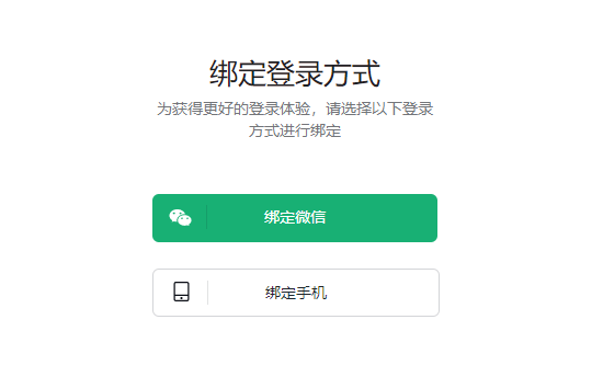 ②登录成功后绑定微信或手机,后续再登录时可通过微信扫码或手机号登录,方便快捷