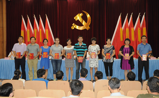 为庆祝中国共产党成立93周年,表彰先进,弘扬正气,进一步激发广大教职工的积极性和创造性,7月1日下午,beat365在幸福校区第一学术报告厅隆重召开纪念建党93周年暨“创先争优”表彰大会。学校领导班子全体成员、受表彰先进集体代表、先进个人、全体党员和参加宣誓的新党员参加了大会。大会由党委副书记、纪委书记谢乾主持。