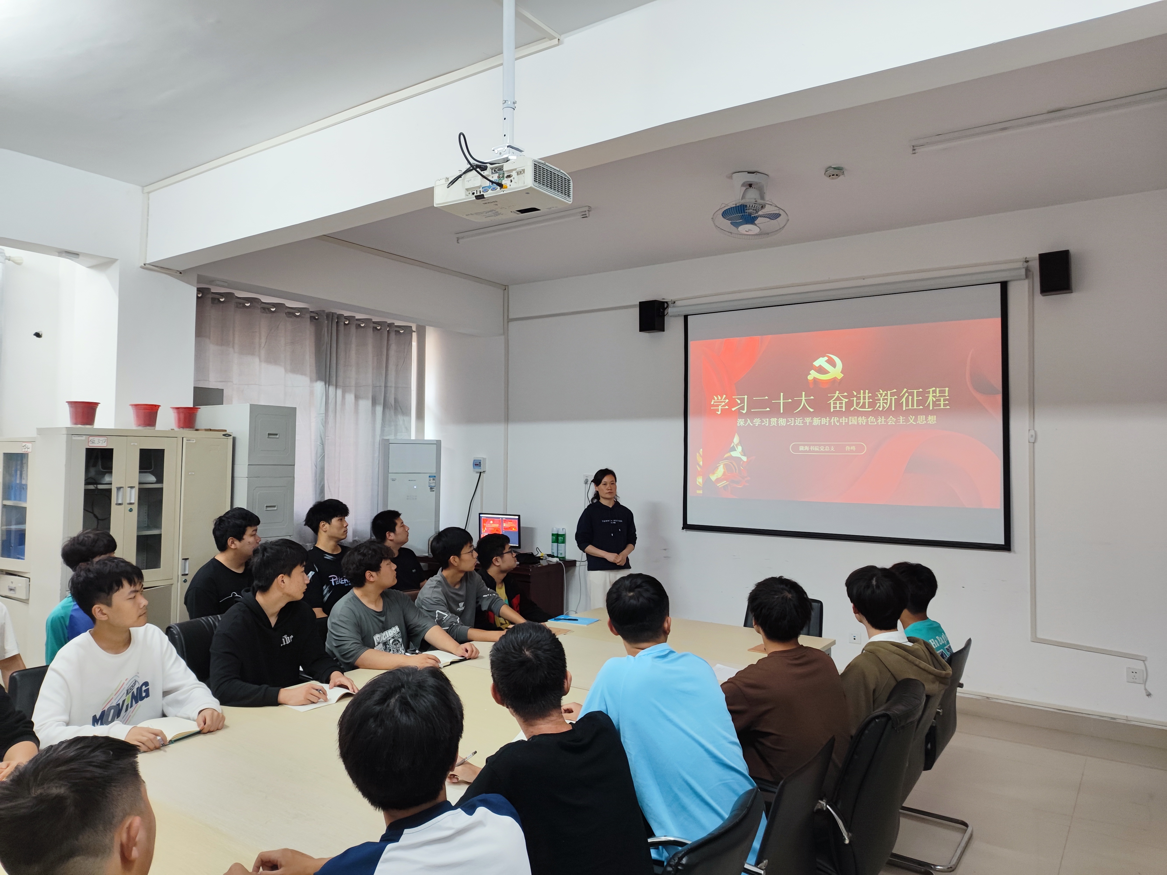 5月9日,陇海书院组织员佟咚在书院党团活动室以《学习二十大 奋进新征程》为题,鼓励同学们要从一点一滴的小事做起,主动作为,敢于担当,为实现中华民族的伟大复兴奉献自己的青春力量。