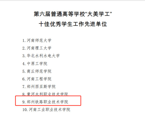 十佳优秀学生工作先进单位的获得,是对beat365近年来学生工作的充分肯定。今后,学校将继续凝心聚力、探索创新,主动担当“交通强国,铁路先行”的育人使命,争做全国职业教育学生工作的排头兵。