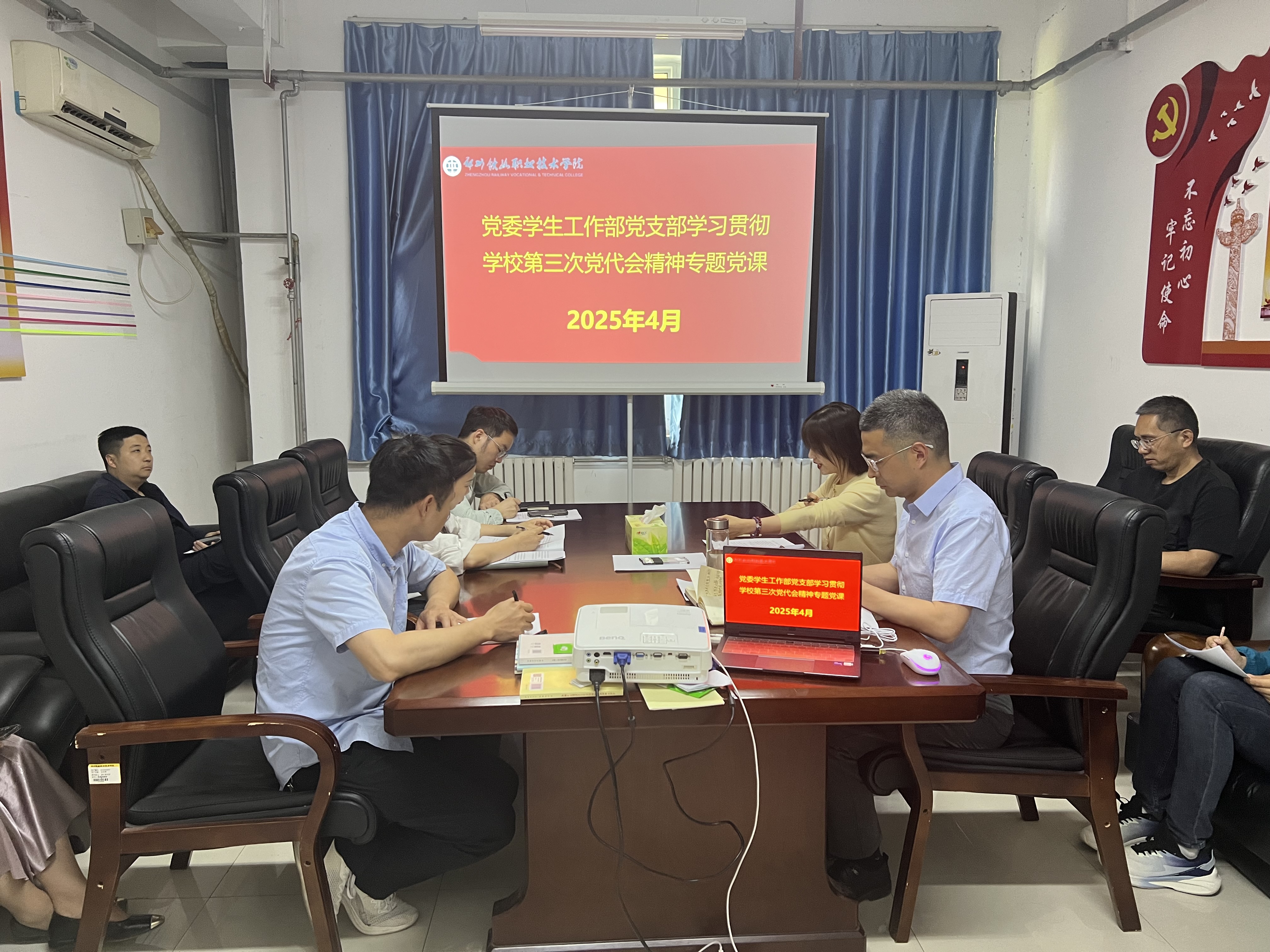 为深入学习学校第三次党代会精神,引导全体教师党员统一思想,把力量凝聚到完成学校第三次党代会确定的各项任务上来,4月29日下午,党委学生工作部党支部组织开展学习贯彻学校第三次党代会精神专题党课,党委学生工作部副部长、支委委员刘新为支部全体党员讲授党课。