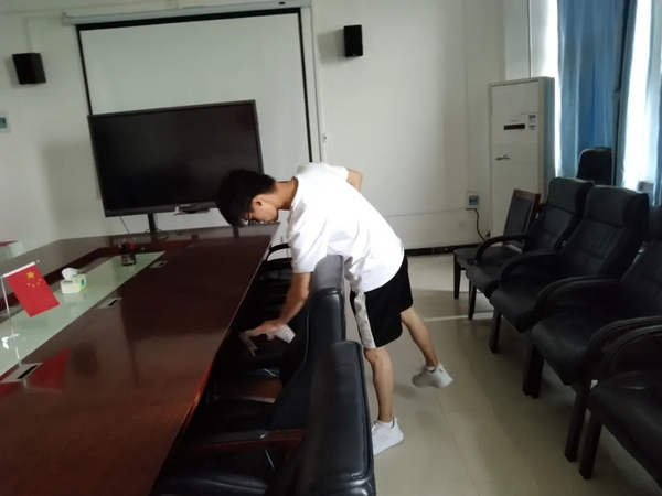 活动开始后,志愿者们有条理的对会议室进行打扫,他们相互配合,合理分工,分为扫地、擦桌子、整理文件、摆放凳子、拖地等任务,所有人都在积极完成自己的任务。在完成自己的任务后帮助未完成任务的同学。在这期间,志愿者们奋勇争先,不怕脏、不怕累,互帮互助,产生了一种和谐大家庭的氛围。这次活动体现出了志愿者们无私的奉献精神和吃苦耐劳的优秀品质。最后,经过志愿者们的努力,会议室焕然一新。