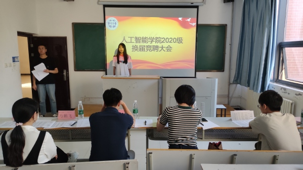 6月22日下午,人工智能学院2021年度学生干部换届竞选大会在1213教室举行。人工智能学院党总支副书记刘杰,学工办主任马鹏飞,辅导员郭亚楠、李睿通,以及2019级和2020级学生干部参加本次大会。