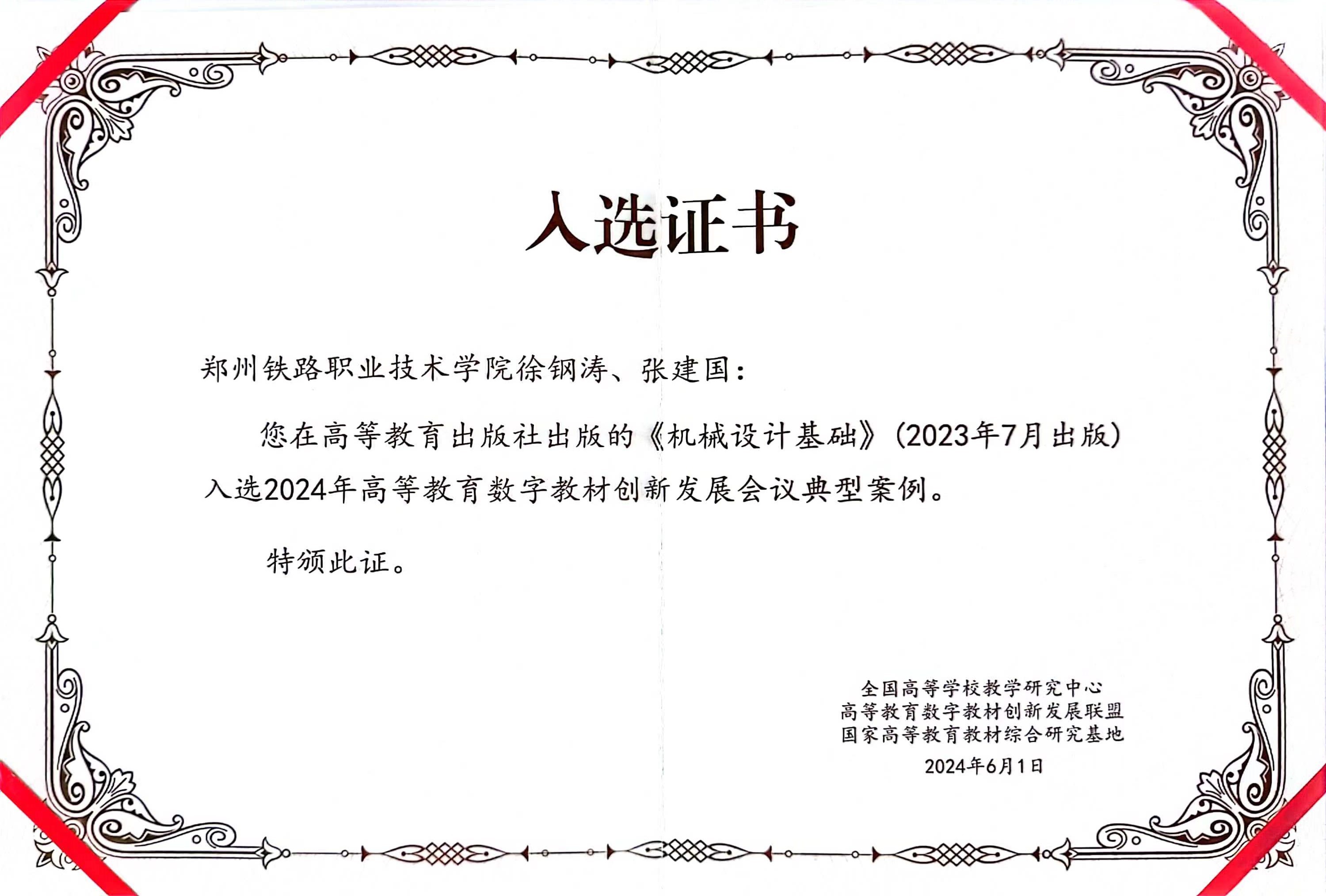 2024年6月1日,经组织推荐、资格审查、专家评审、网上公示等程序,beat365徐钢涛、张建国老师主编的数字教材《机械设计基础》入选2024年高等教育数字教材创新发展会议典型案例。