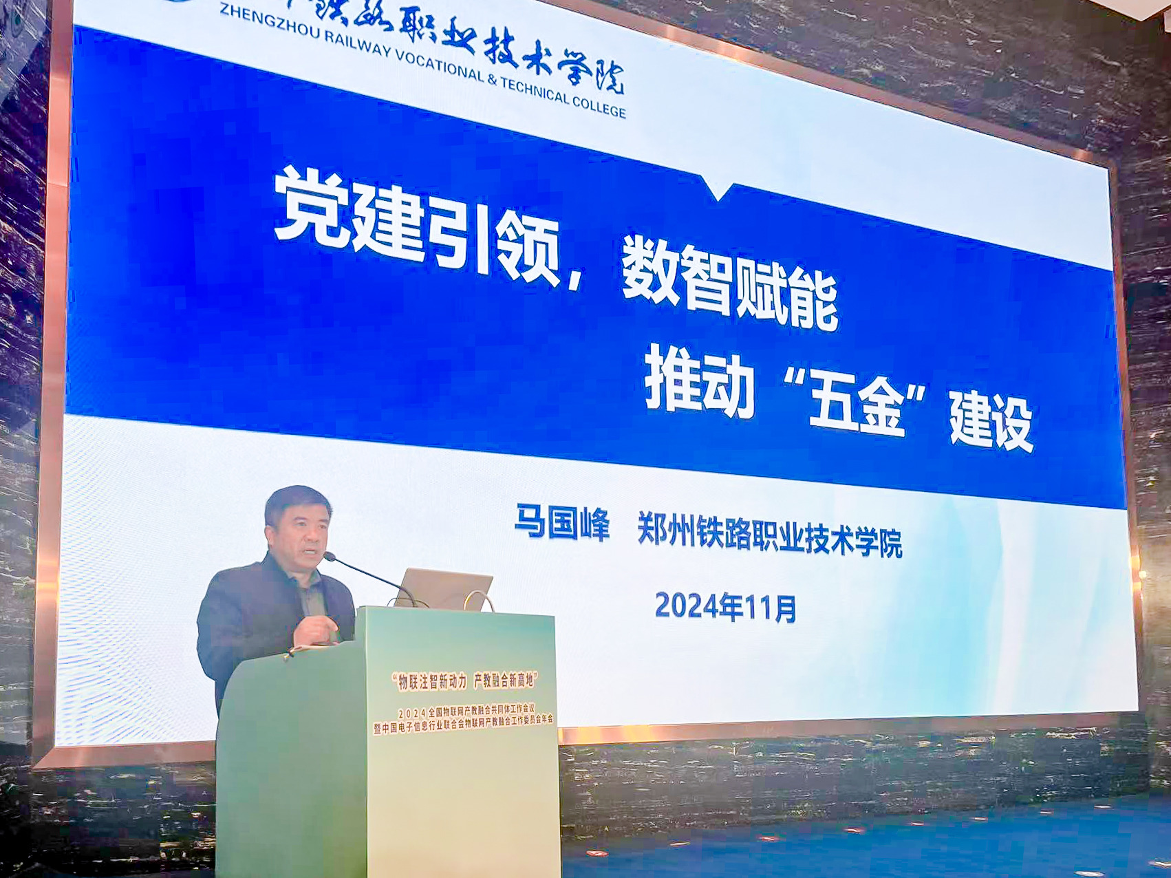 颁奖仪式后,马国峰院长作了题为“党建引领,数智赋能,推动‘五金’建设”的报告分享。报告中,马院长全面介绍了我院在现场工程师项目、数字教材建设及产教融合开展等方面的丰硕成果,并围绕数智赋能,党建业务融合发展、推动“五金”建设、数智赋能,创新发展成效三个主题,深入阐述了我院在产教融合方面的探索和实践,特别是在党建引领下,如何通过数智化手段赋能教育教学,推动“五金”建设。马院长的报告深入浅出,既有理论高度,又有实践深度,引起了与会代表的广泛共鸣和热烈反响。