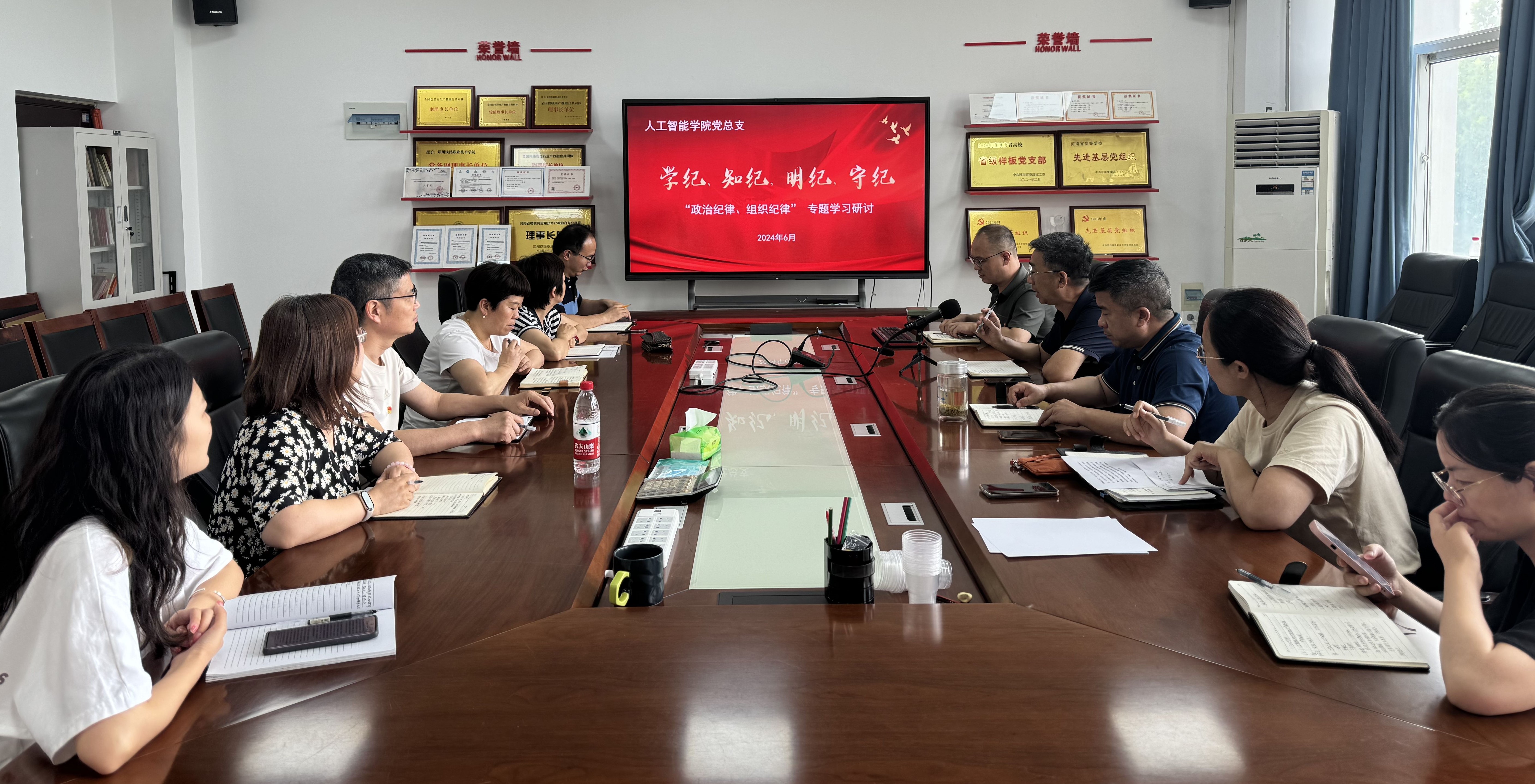 6月4日上午,人工智能学院党总支组织学院班子成员和骨干教师代表开展“书记讲党课”活动,党总支书记徐钢涛带领大家共同深入学习《中国共产党纪律处分条例》中政治纪律与组织纪律相关内容。