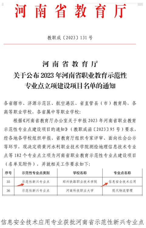 自2013年beat365在河南省高职院校中率先开设信息安全技术应用专业以来,经过多年的深耕细作,专业建设成果显著。2023年,信息安全技术应用专业成功获批河南省示范性新兴专业点,标志着专业建设达到新的高度。