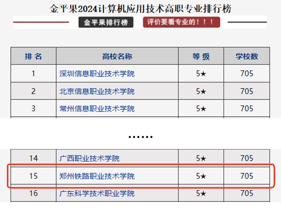 在金平果中评榜(GAR)发布全国高职院校专业竞争力排行榜中,连续五年均为5星等级好评专业。2024年本专业在全国705个开设该专业的高职高专院校中排名第15名。