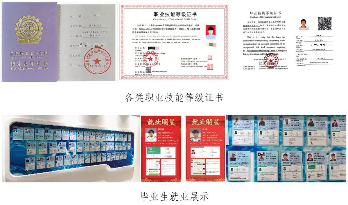 专业推行双证书培养模式,学生毕业可取得计算机程序设计员、JavaWeb应用开发职业技能等级、数据库应用系统设计工程师等证书,考证通过率达 95%以上。