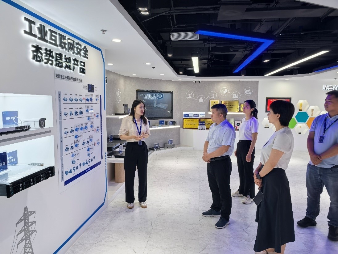 长扬科技事业部负责人石倩倩介绍了公司的基本情况,相关业务、技术研究和产品。双方共同考查了长扬科技工业互联网安全相关产品,考察了企业在电力、石油石化、城市市政、轨道交通、智能制造等产业的安全产品及相关系统仿真展板。网络攻防研究室工程师闫广华演示了轨道交通系统仿真展板的组成及功能,展示了轨道交通系统网络安全的重要性。
