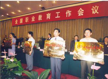 2002年学院荣获全国职业教育先进单位,国务委员陈至立亲切接见时任学院院长王志勤