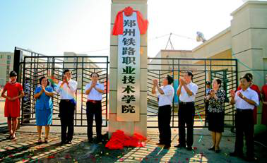 公司党委书记、董事长、总经理郭拥军和学院党委书记王清义共同为郑州轨道交通学院揭牌(2011-11-7)
