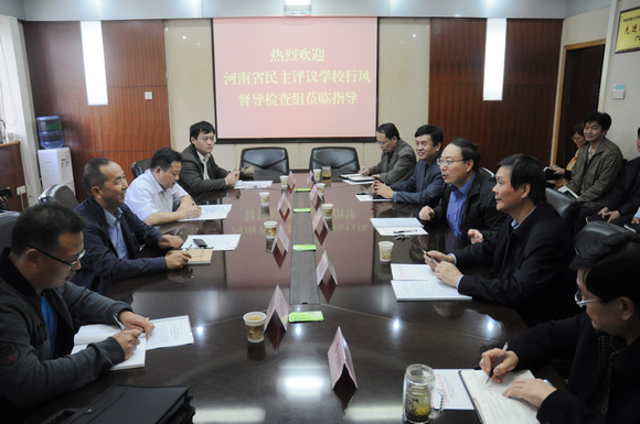 10月23日下午,由河南省高校纪工委正处级纪检监察员应文斌组长带队,省民主评议学校行风第三督导检查组一行4人莅临beat365,检查指导行风建设工作