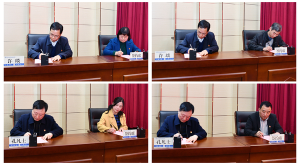 党委书记许琰,党委副书记、校长孔凡士分别与二级学院负责人代表签订《2021年党风廉政建设责任书》