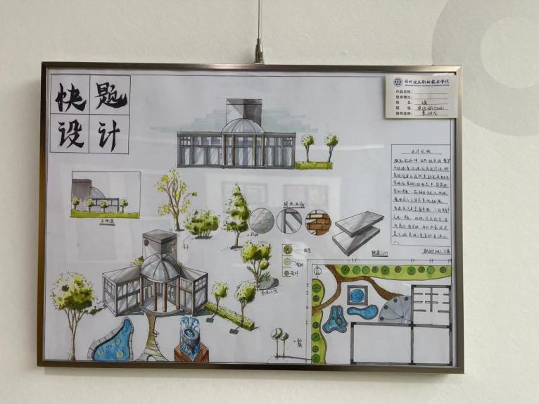 本次课业以校内景观公共空间设计为主题,运用手绘快题的表现方法进行景观设计表现。通过对校内制定区域进行实地勘察,同学们运用自己在课堂所学的知识,总结出本区域所存在的痛点,并用手中的画笔在图纸上绘制出自己思考过后的改进方案,同学们希望通过自己的努力美化校园环境,提高校园生活空间艺术性与实用性。