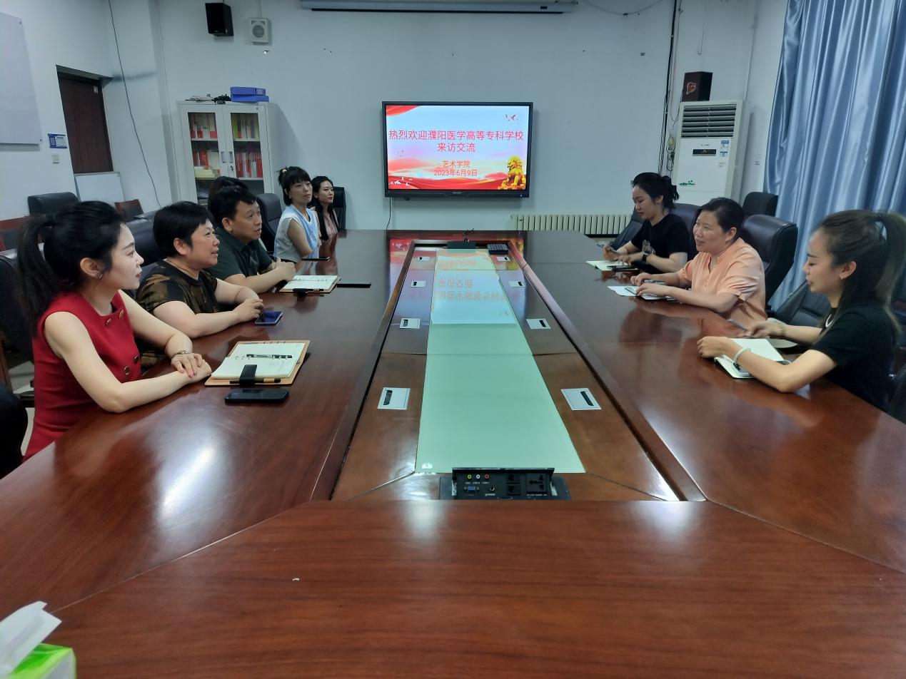6月9日下午,濮阳医学高等专科学校一行3人来beat365艺术学院考察交流,就公共艺术教学管理、课程设置和学术科研等进行座谈。艺术学院书记程萍、院长邹联丰出席座谈会并致欢迎辞。艺术学院公共艺术教研室全体教师参加了座谈会。