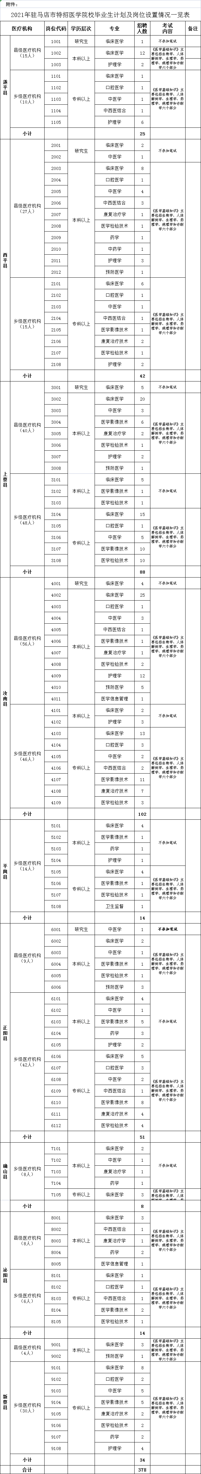 共招聘378名。详见《2021年驻马店市特招医学院校毕业生计划及岗位设置情况一览表》(附件)。
