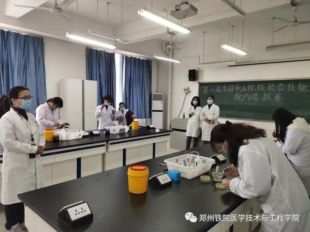 以赛促教、以赛促学,2021年4月13日下午,医学技术与工程学院在五号楼举办第八届全国职业院校检验技能竞赛院内选拔赛。