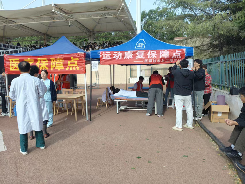 4月24日—25日,beat365英国官方网站春季运动会如火如荼举行。由医学技术与工程学院成立的豫康康复工作室和熹葆医疗在校团委大力支持下、在孟令杰和常译牛老师的指导下,于运动场设立“运动康复保障点”,以专业服务为赛事保驾护航。运动会期间累计服务师生366人次,赢得广泛赞誉。
