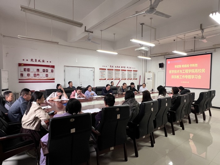 9月23日下午,医学技术与工程学院在5307会议室召开了高校民族宗教工作专题学习会,学院领导班子及全体教职工参会。