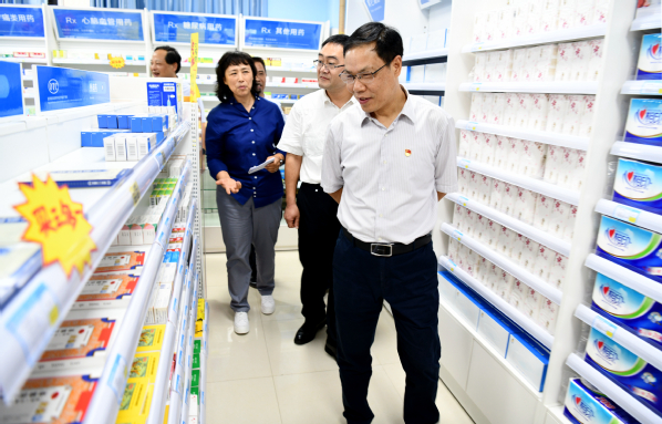 随后与会领导走进生产性基地——好药师大药房现场参观指导。