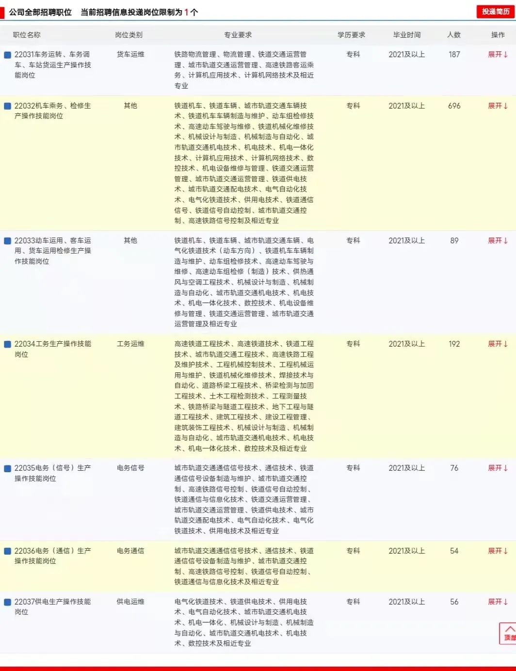2.符合招聘岗位要求的专业条件,列入国家招生计划、具备派遣资格,2022年和2021年毕业的全日制普通高等院校大专(高职)学历毕业生。在校期间所学专业为铁路方向或所学主要课程中包含铁路专业课程。