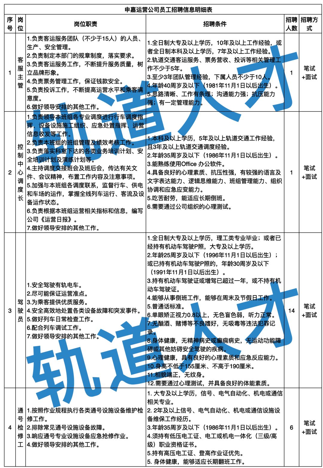 2.应聘人员务必对应资格条件正确选择应聘岗位,每人限投一个岗位,多投者视为无效投递。凡参加过申嘉运营公司招聘岗位笔试面试的,不得再次报名同一岗位,否则视为无效投递。