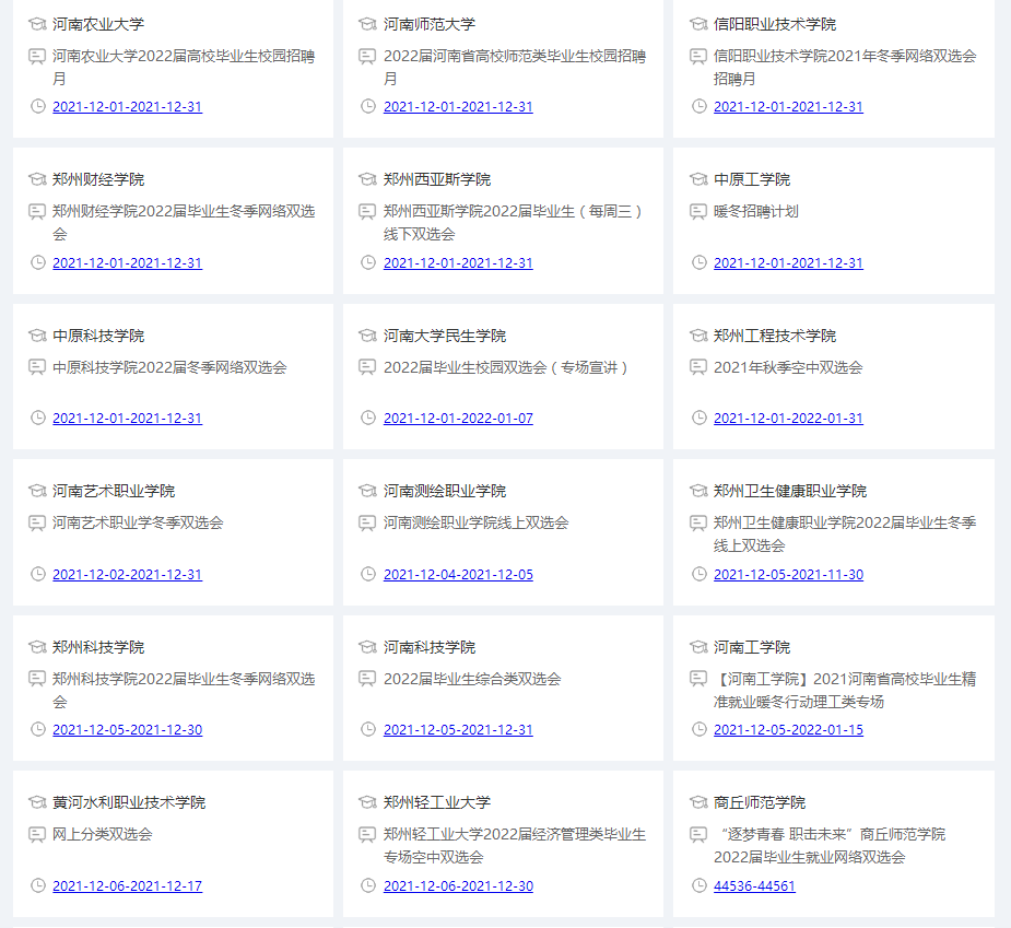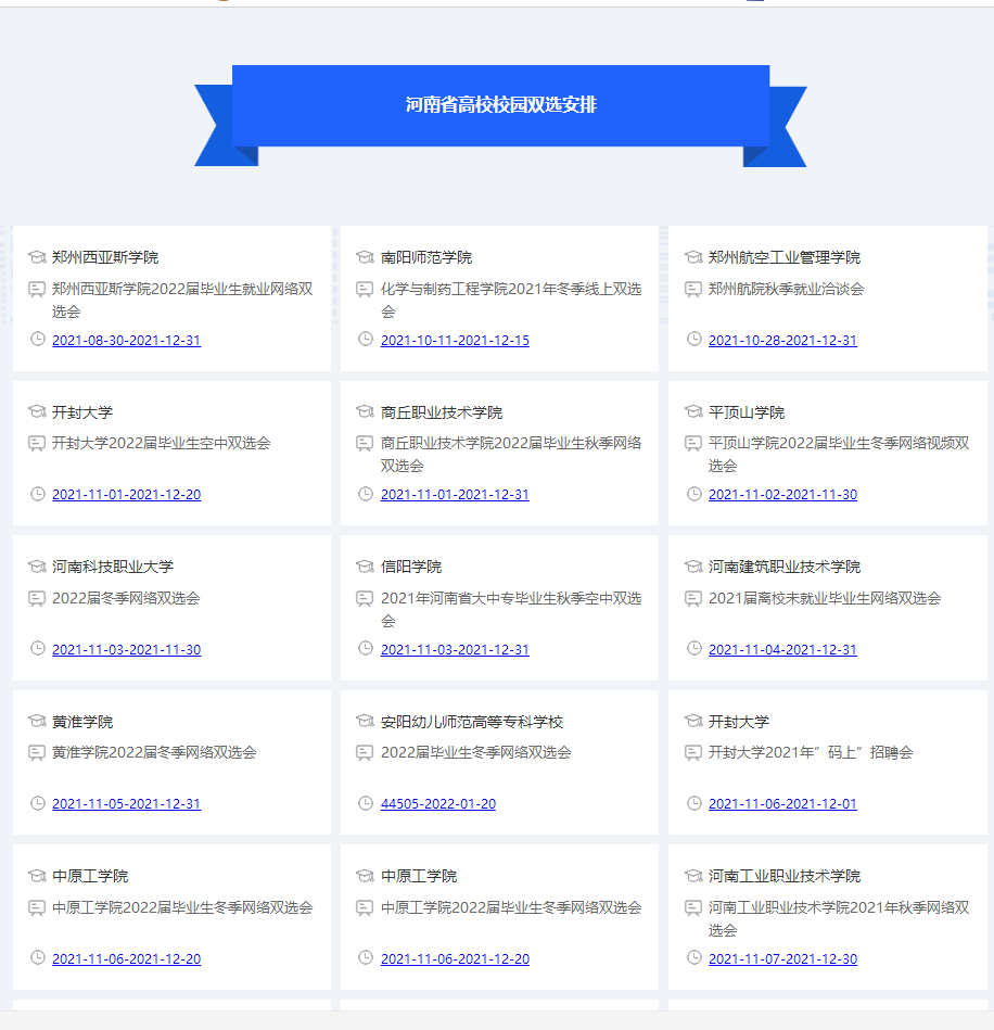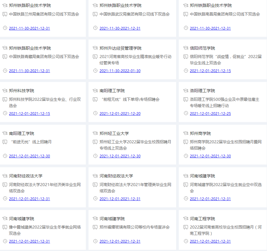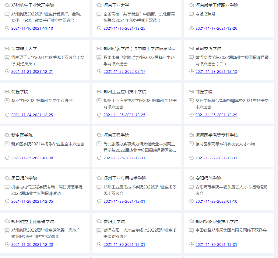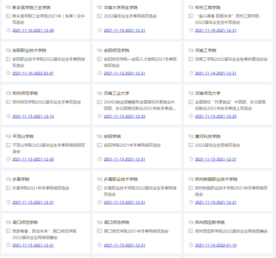 秋渐远,冬初上。当前正值高校毕业生求职择业的黄金时期,为促进我省2022届高校毕业生更加充分更高质量的就业,省教育厅组织开展“河南省2022届高校毕业生‘逐梦青春豫见位来’校园招聘月”,已上线127场双选活动,用人单位和毕业生可通过活动页面点击双选会名称参加双选。
