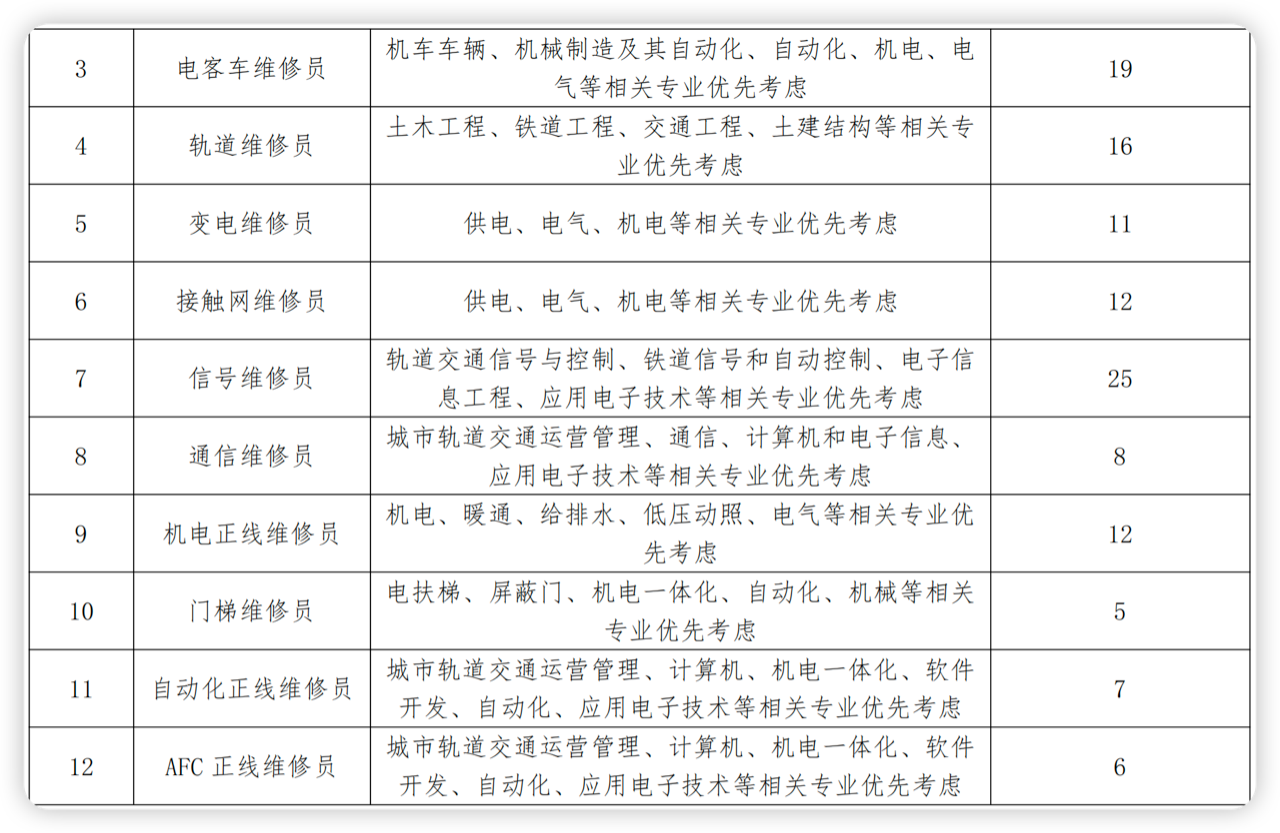 1.年龄 30 周岁及以下,全日制大专及以上学历 2023 届毕业生,全日制本科及以上学历、轨道交通行业重点院校毕业生优先考虑;