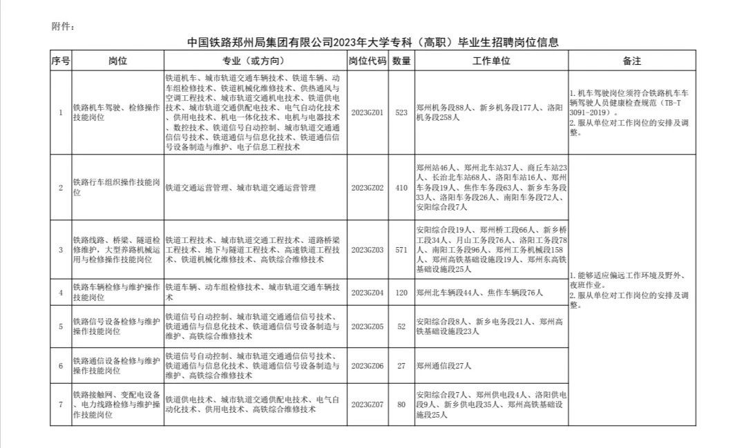 根据企业发展对人才的实际需求,中国铁路郑州局集团有限公司拟招聘全日制普通高等院校大专(高职)学历毕业生,现将有关事项公告如下:
