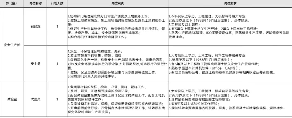 徐州银山轨道混凝土有限公司是徐州地铁集团控股子公司,专业从事商品混凝土、混凝土预制件、混凝土制品及添加剂研发、制造、销售的国有企业。公司成立于2019年1月10日,拥有国内领先的专业试验室1座,HZS180型自动化商品混凝土生产线2条,年生产商品混凝土60万立方米。现根据公司发展需要,诚邀有志之士加入,具体招聘事宜如下: