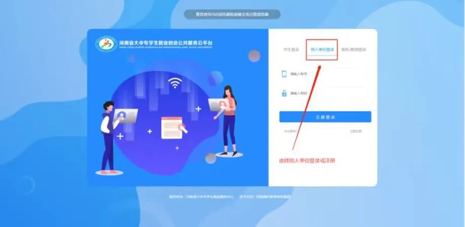 登录“河南省毕业生就业信息网”(http://hnbysyun.jyt.henan.gov.cn),注册用人单位(新用户)、发布岗位信息、报名参加活动。