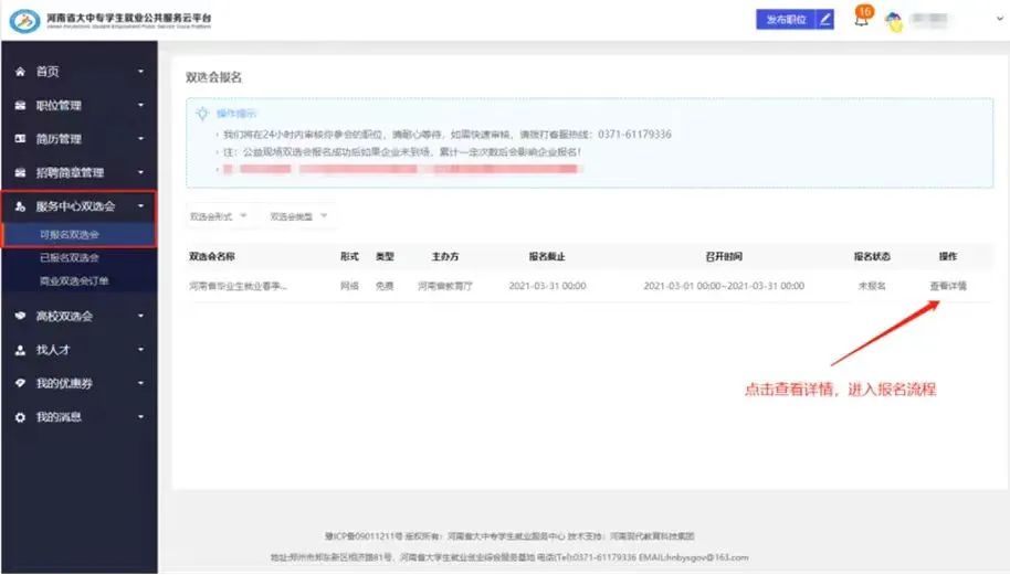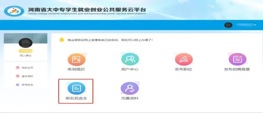 3.审核通过后,点击个人中心“报名双选会”或用人单位后台“可报名双选会”,选择您要参加的双选会场次,进入报名流程。