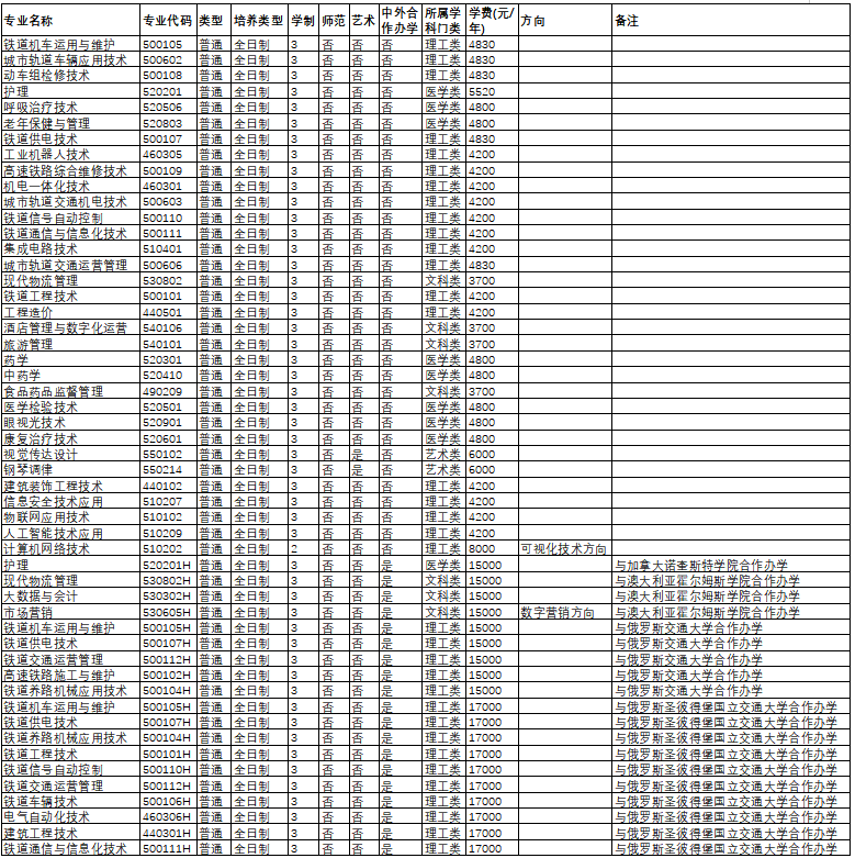 第十条只招男生专业:铁道机车运用与维护、城市轨道车辆应用技术、动车组检修技术、铁道工程技术、高速铁路施工与维护、铁道养路机械应用技术。