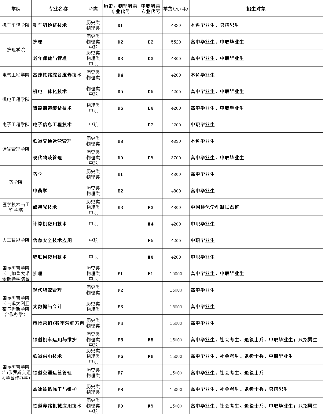 4.志愿填报专业代号详见下表: